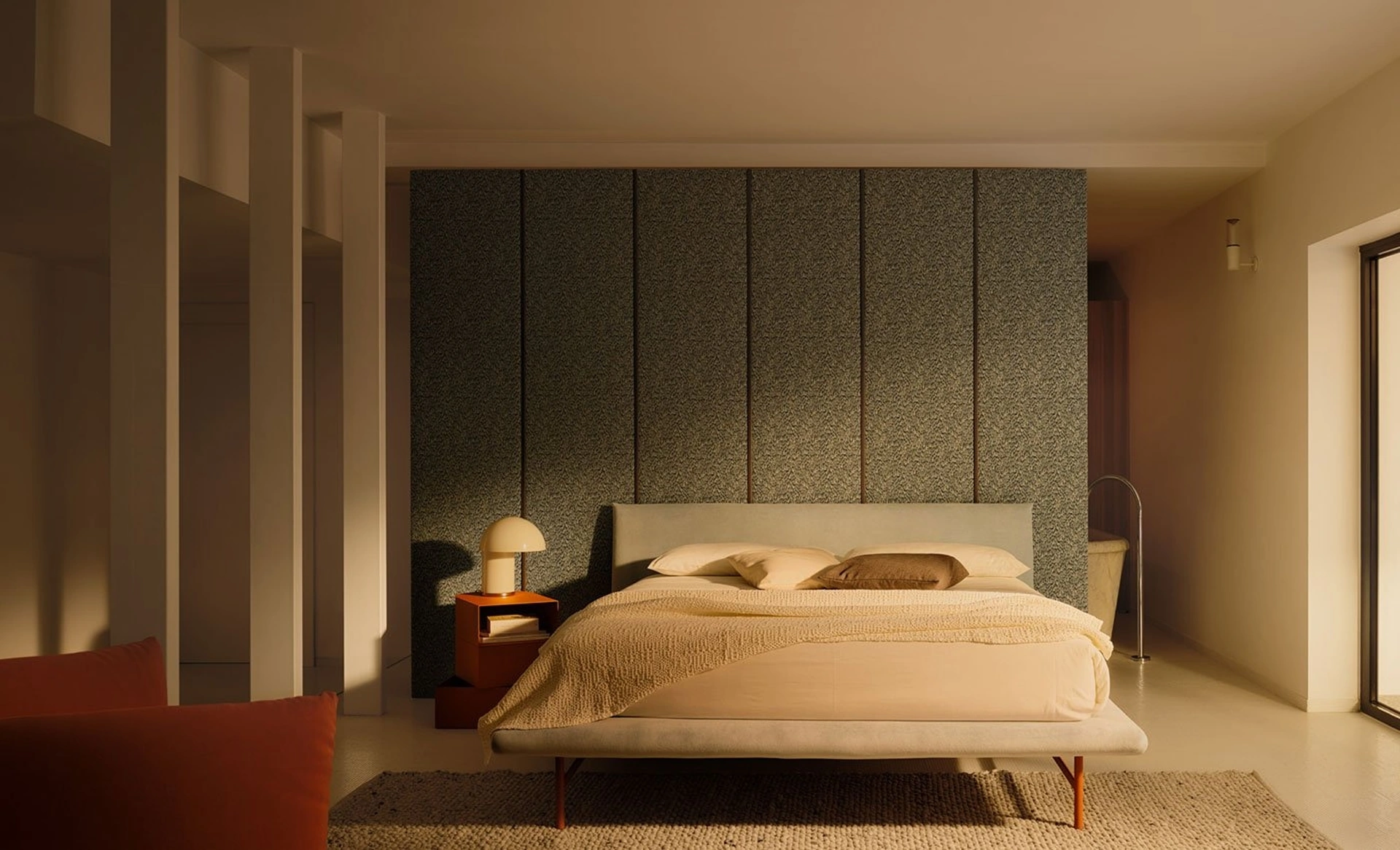 Vuoi progettare la camera da letto? Ti presentiamo il letto in tessuto Dora di Bolzan Letti per spazi design.