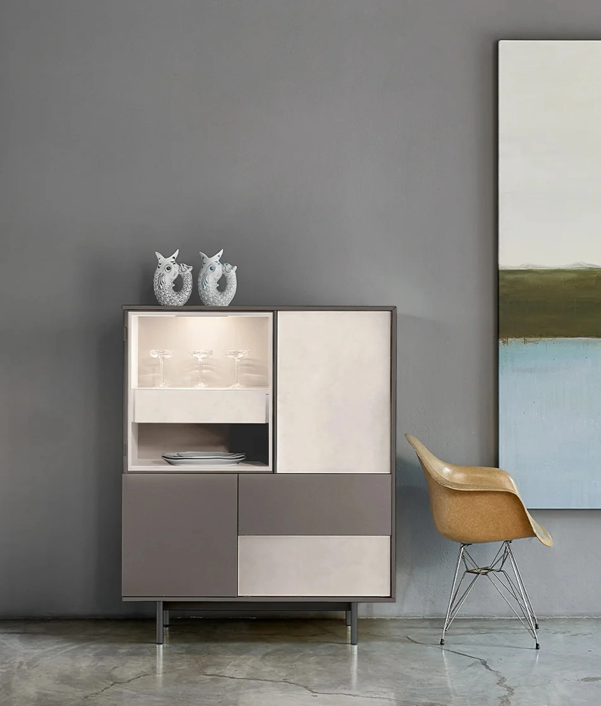 Clicca e scopri di più! Mobile soggiorno Scrigno 02 di Sangiacomo in laccato opaco: ti aspetta per impreziosire le tue stanze moderne.