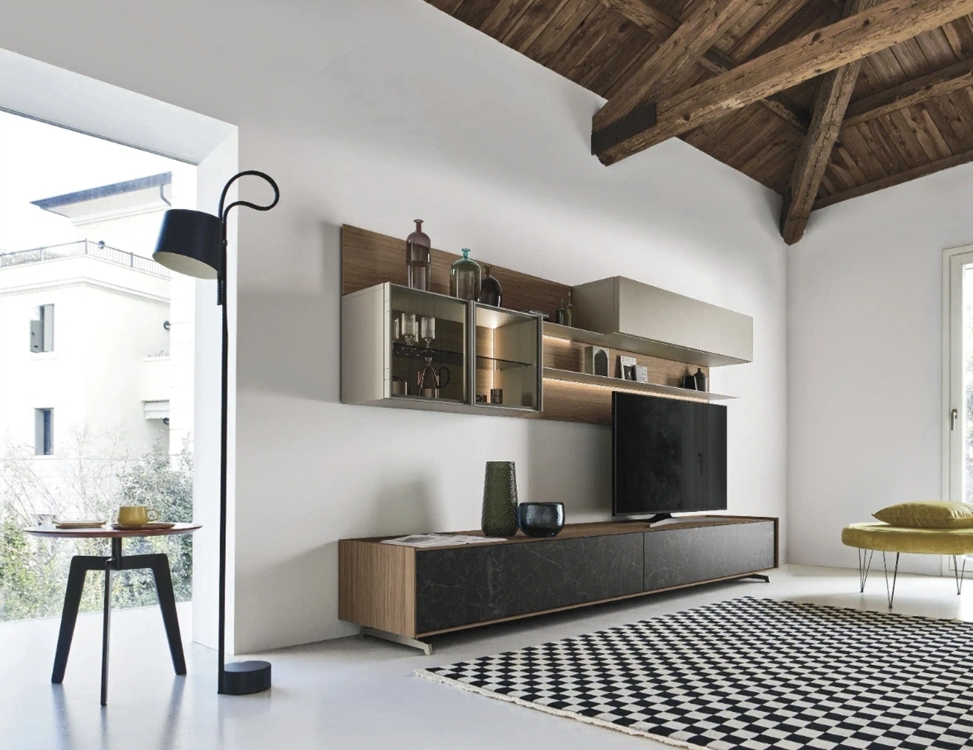 Se vuoi completare un living operativo e pratico dalle linee moderne, ti presentiamo la parete attrezzata Cabaret One 03 Sangiacomo.