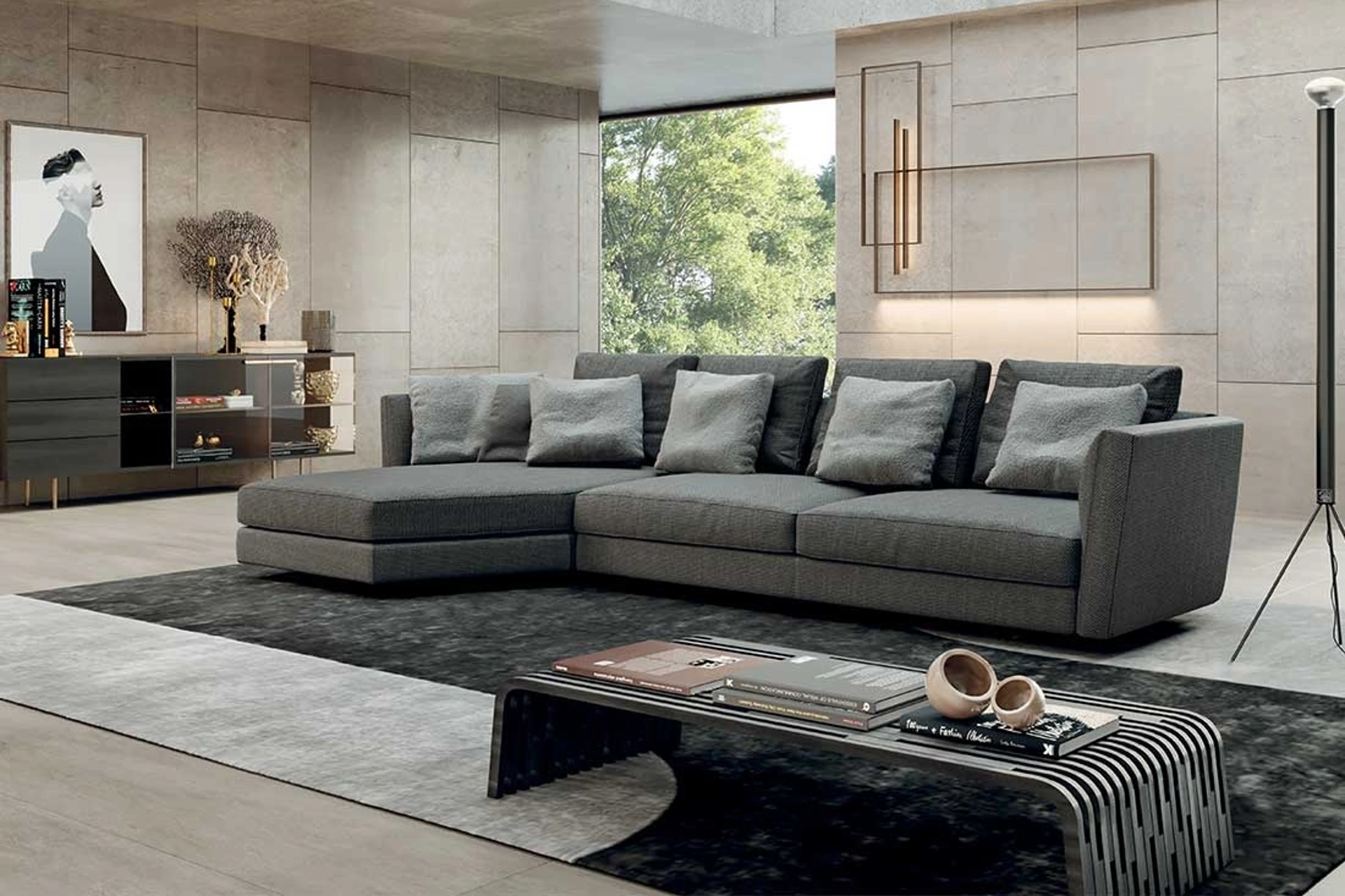 Clicca e ottieni informazioni sui salotti moderni di Pacini e Cappellini! Differenti modelli di divani, come Ester con penisola, ti aspettano.